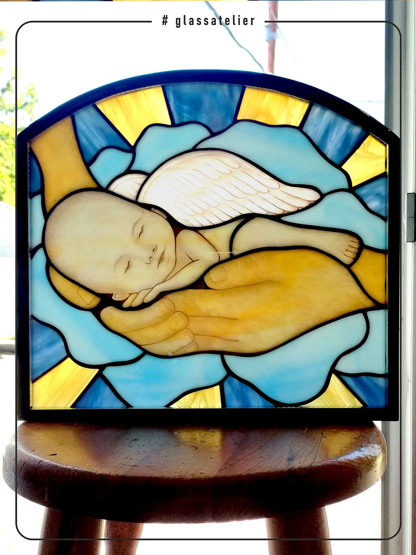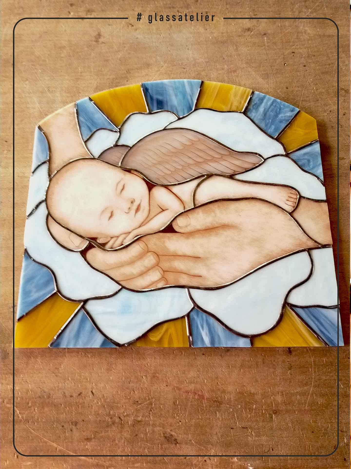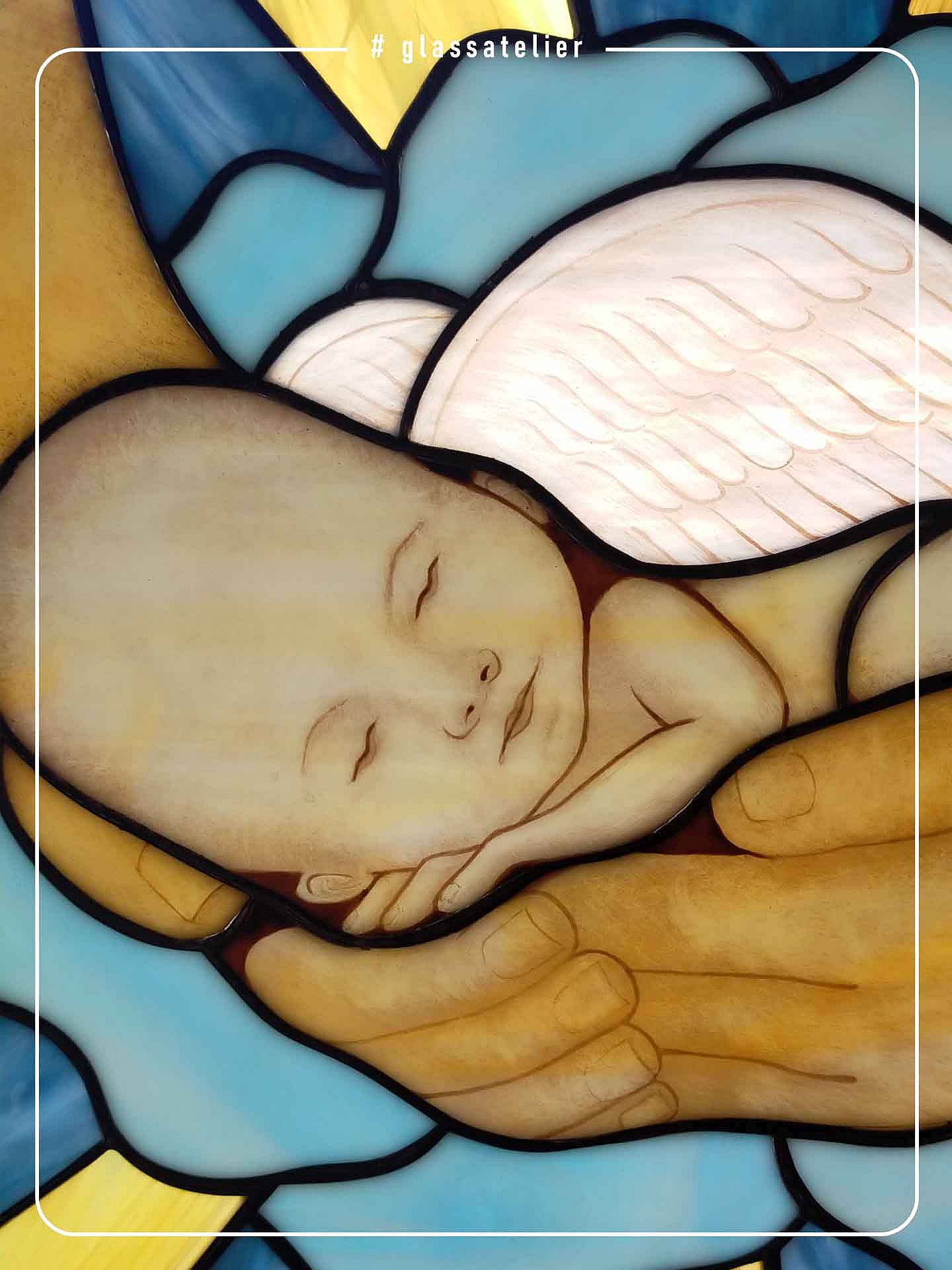 Witraż do nagrobka z motywem dziecka. Nie będzie opisów co do powodów wzoru.